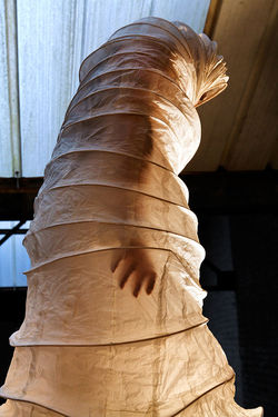 *Costume en céramique, chanvre de Manille, rotin, branches.